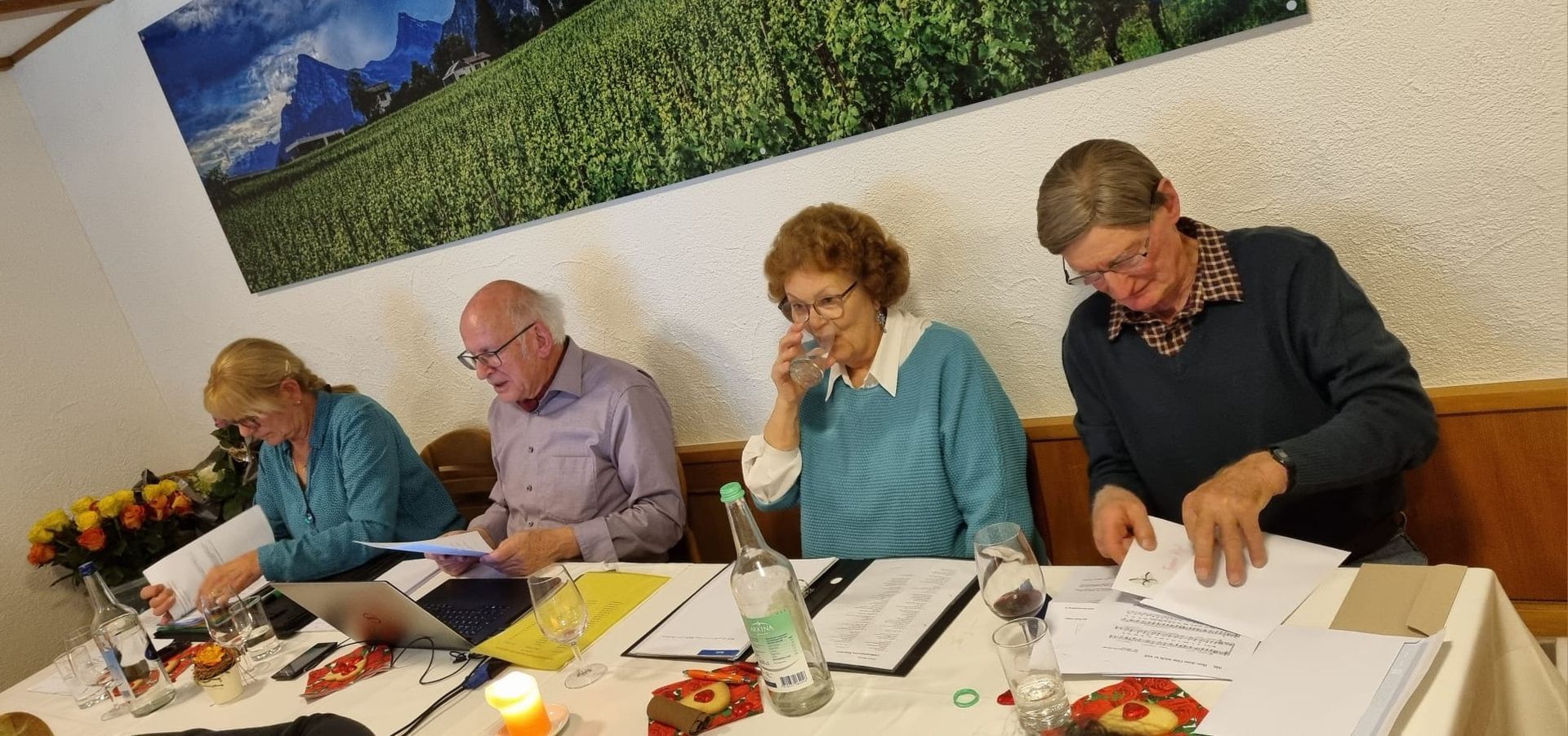 v.l. Markus Staub - Vizepräsident, Komali Silva - Präsidentin, Mirjam Bertogg - Bibliothekarin, Heidi Meier Huber - Beisitzerin und Webmasterin, Sebestyén Nyirö - Dirigent (auf dem Bild fehlt Silvia Messerli - die neue Aktuarin)